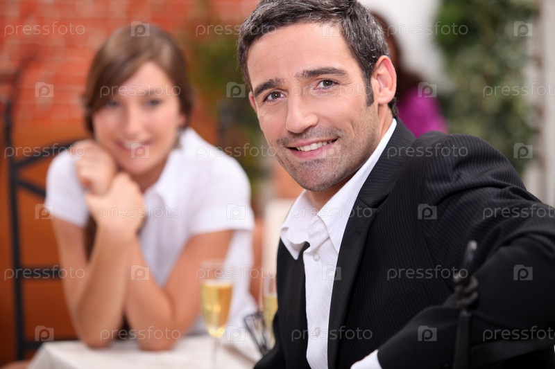 Сорокалетний мужчина и шестнадцатилетняя девушка с шампанским в ресторане