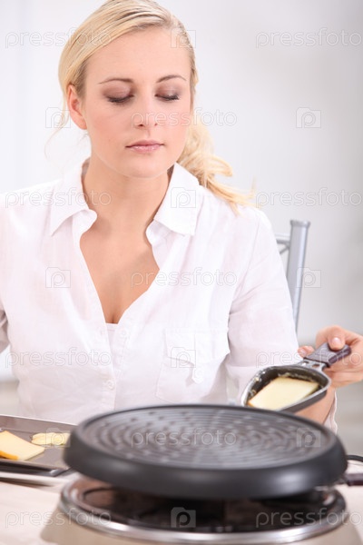 Женщина готовит раклетт