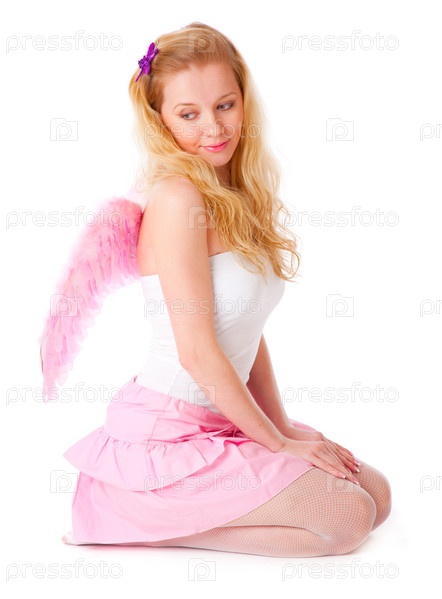 Блондинка с крылышками, изолированная на белом фоне