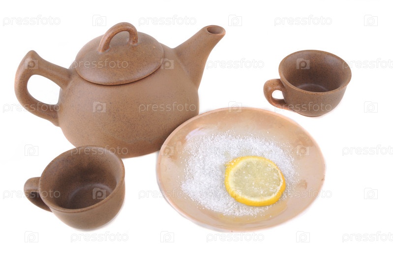 Чайный сервис на белом фоне