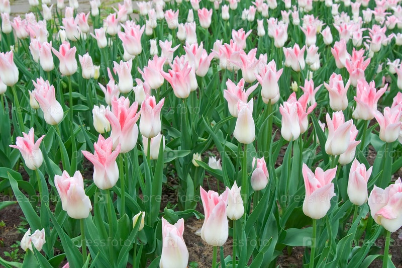 Бело-розовые тюльпаны, весна