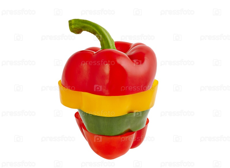 Маленький нарезанный цветной перец на белом фоне