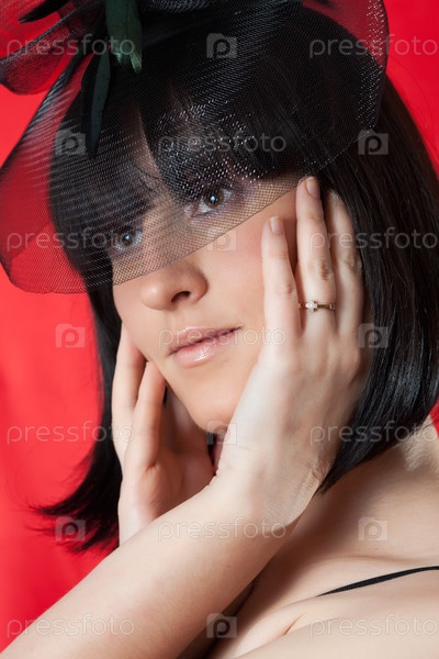 Гламурная молодая женщина в черной шляпе