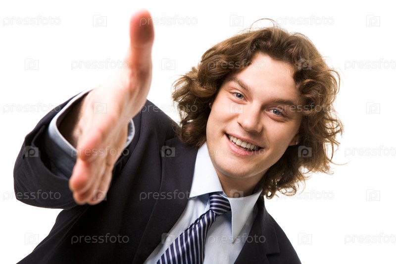 Мужчина, протягивающий руку бизнес-партнеру с улыбкой