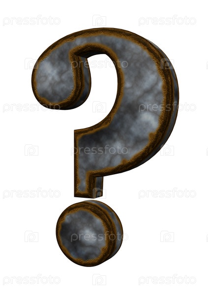 Ржавый вопросительный знак на белом фоне - 3d иллюстрация