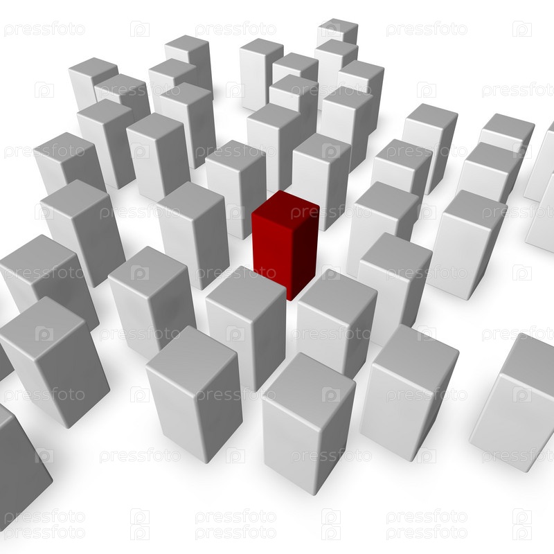 Белые кубики и один красный - 3D иллюстрация