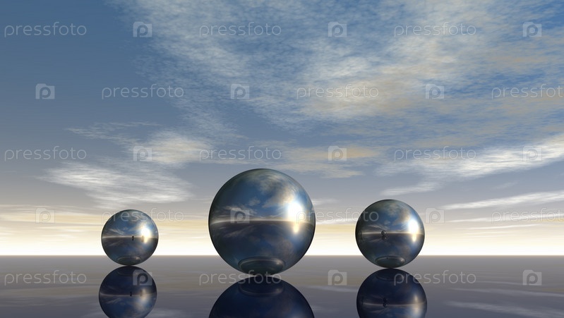 Металлические сферы под облачным небом - 3d иллюстрация