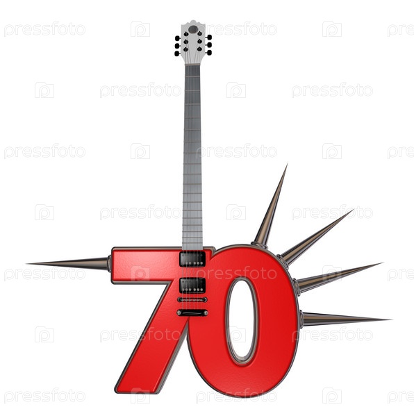 Число 70 и гитара с шипами на белом фоне - 3d иллюстрация