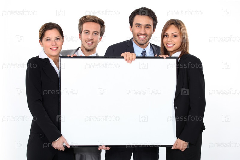 Бизнес-команда держит пустой плакат