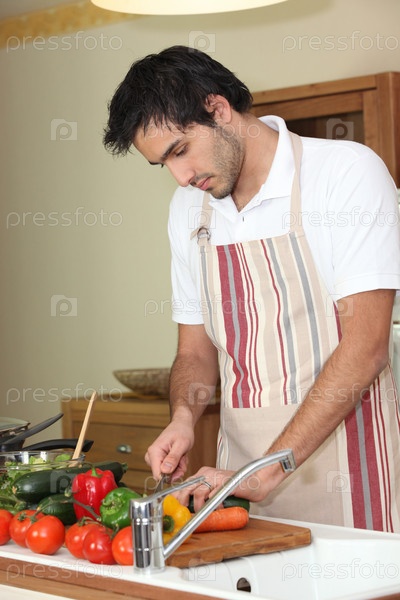 Молодой мужчина готовит овощи
