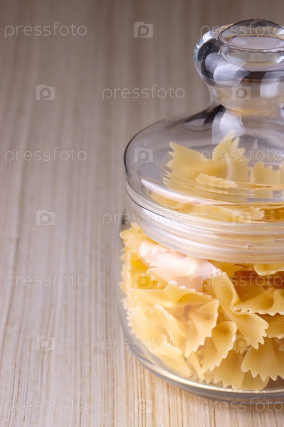 Банка с сырыми макаронами