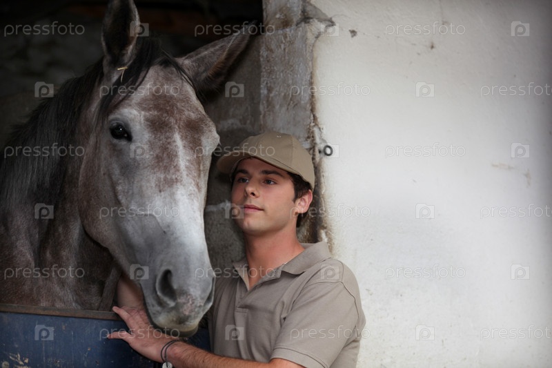 Мальчик ухаживает за лошадью