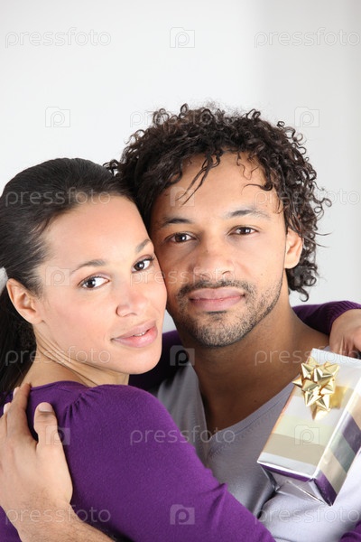 Мужчина дарит подарок подруге на день рождения