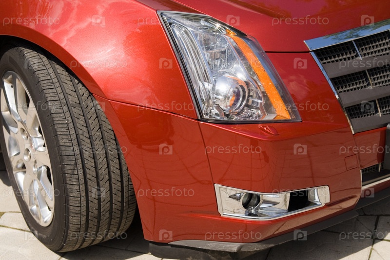 Фара красного легкового автомобиля