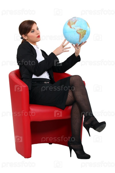 Деловая женщина держит глобус