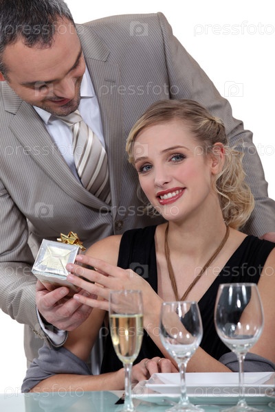 Женщина в ресторане получает подарок