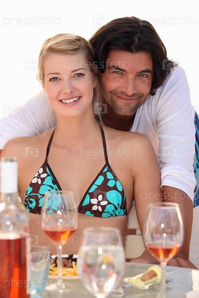 Пара в ресторане на пляже