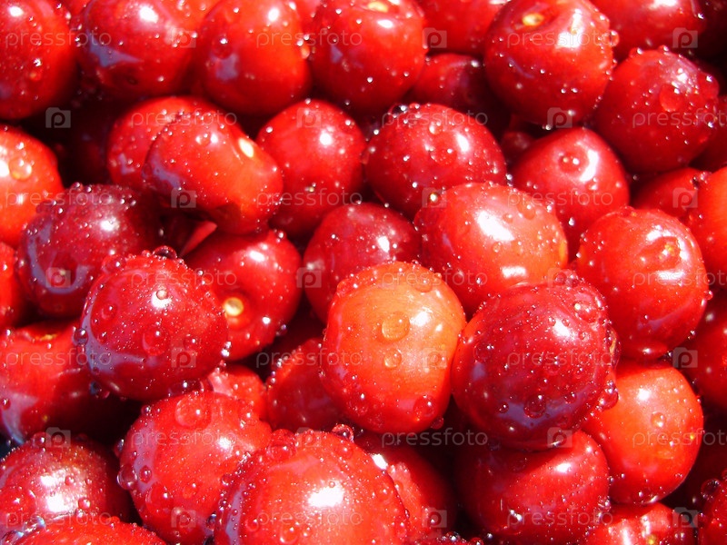 Мытые ягоды вишни