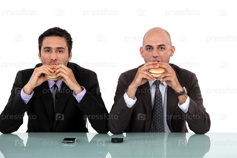 Два предпринимателя едят гамбургеры