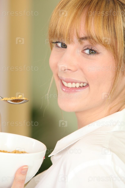 Женщина ест хлопья