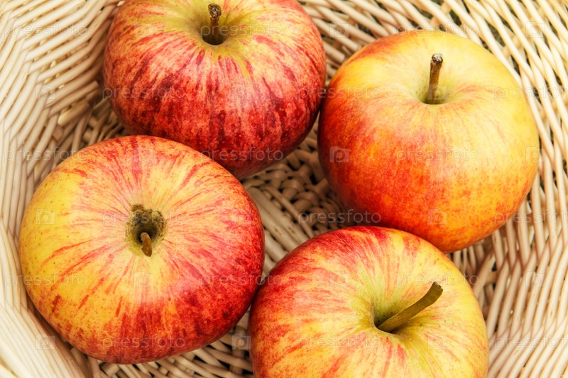 Урожай садовых яблок в корзине