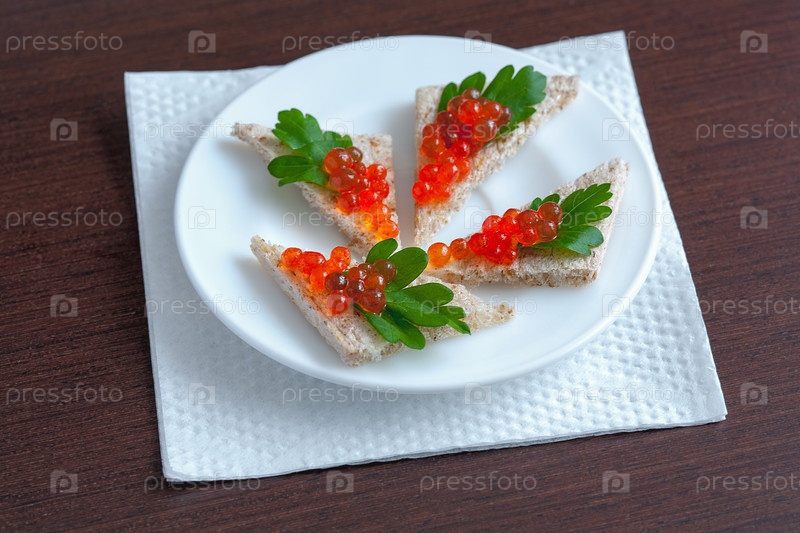 Бутерброды с красной икрой и петрушкой