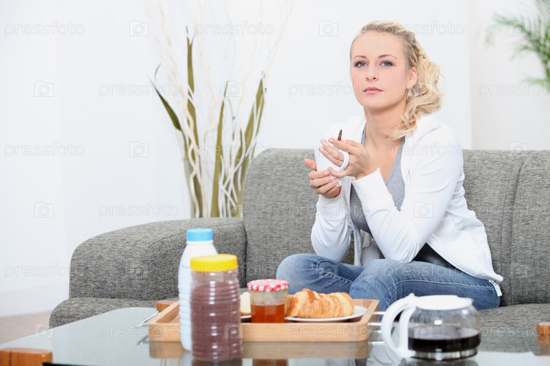 Женщина завтракает дома