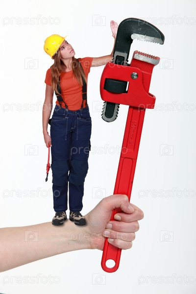 Композиция с женщиной и раздвижным гаечным ключом