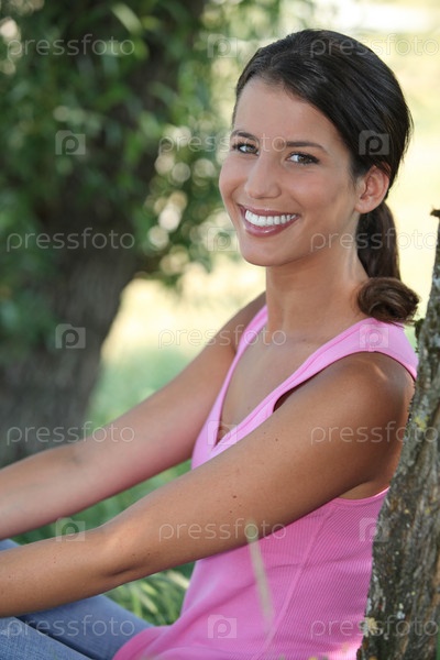 Женщина сидит под деревом