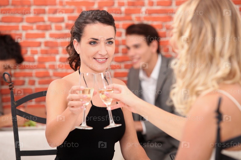 Две молодые женщины с шампанским