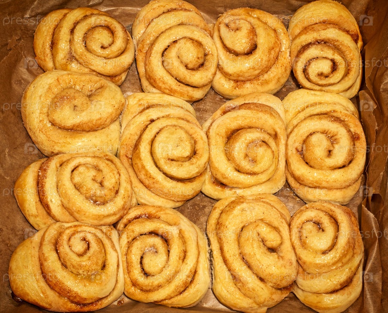 Сладкие булочки с корицей на бумаге для выпечки