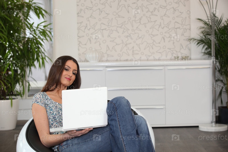 Женщина с ноутбуком в удобном кресле