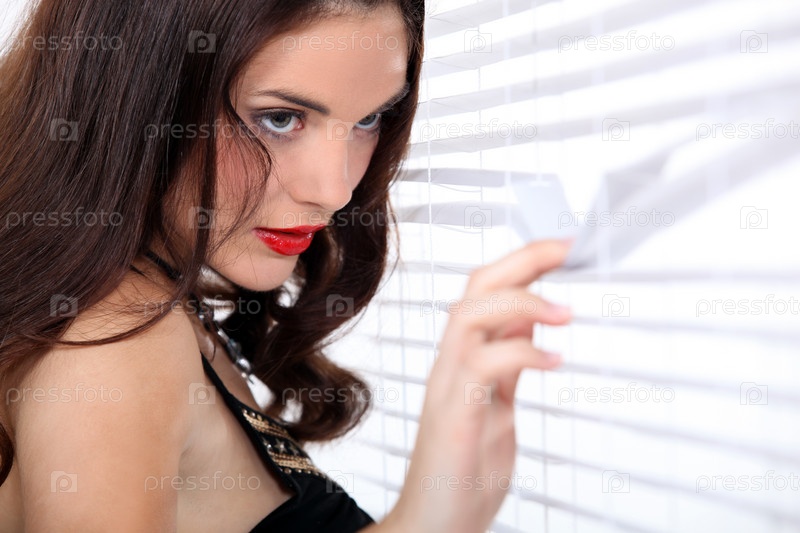 Женщина подсматривает через жалюзи