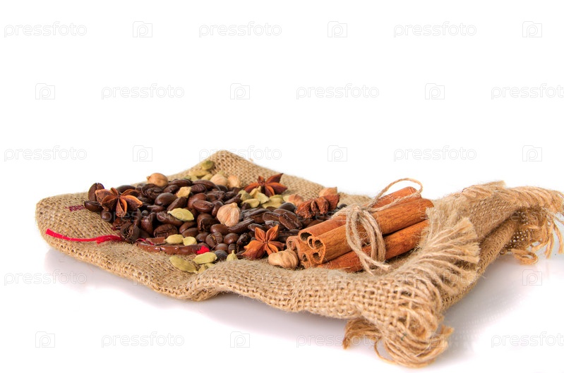 Кофейные бобы на мешковине