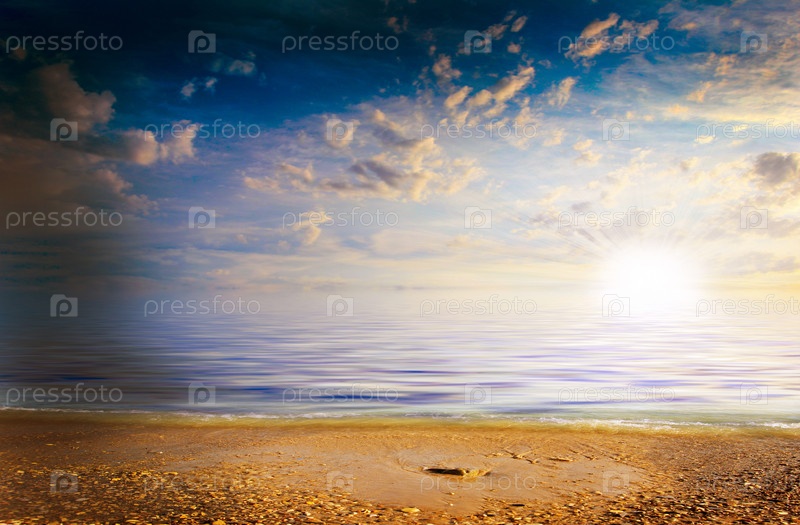 Красивый солнечный берег и небо