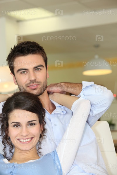 Пара отдыхает на диване