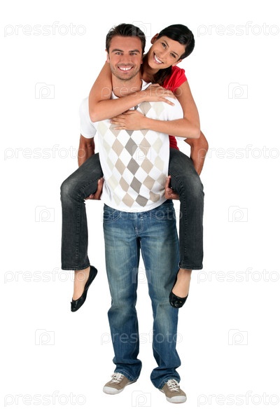 Мужчина едржит подругу на спине