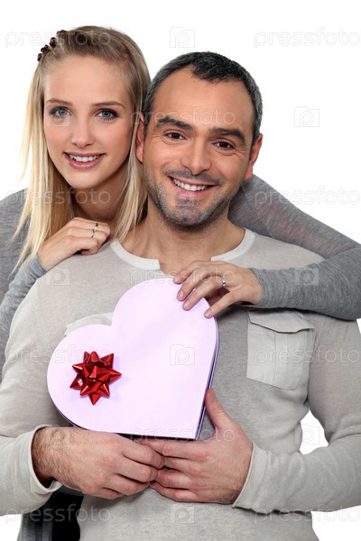 Пара с подарком в форме сердца