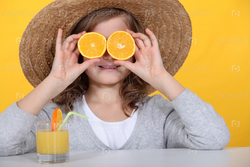 Девочка с апельсинами и соком