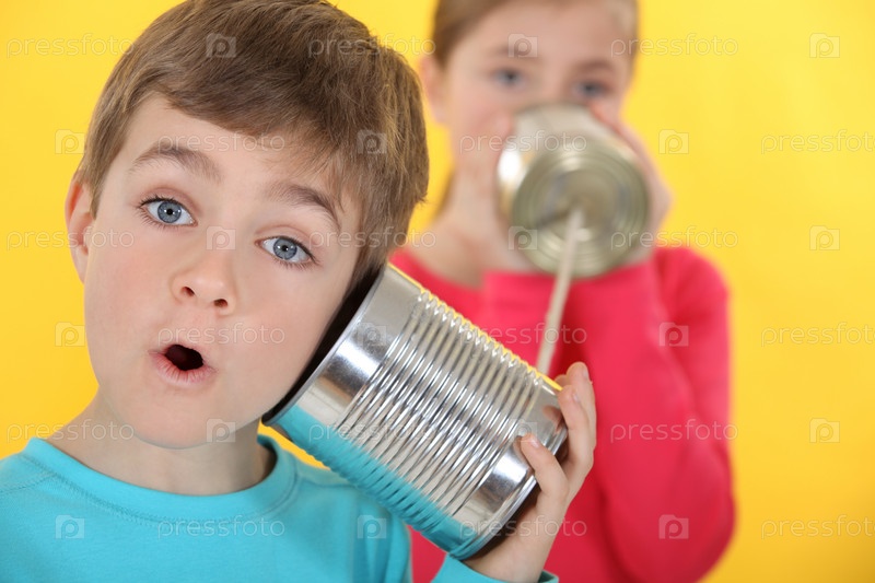 Дети общаются через консервные банки