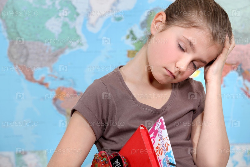 Скучающая девочка засыпает в школе
