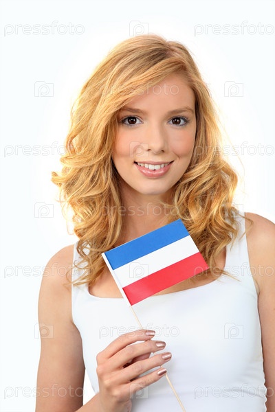 Девушка держит Голландский флаг