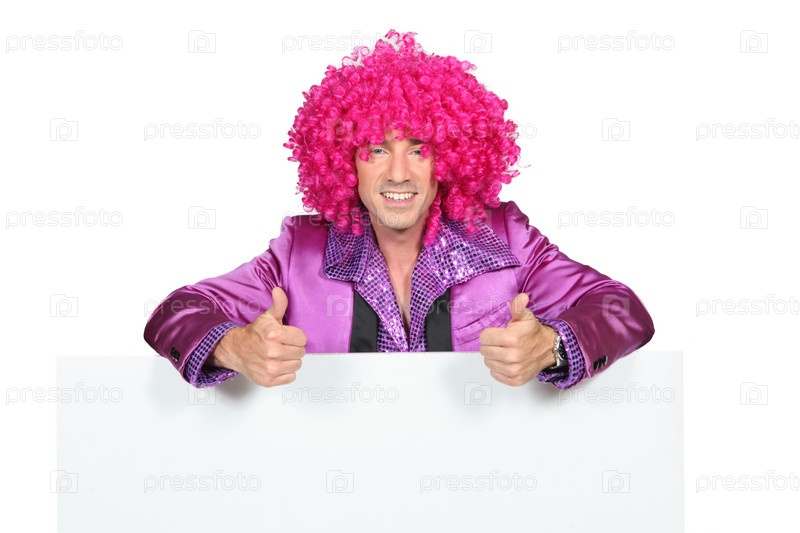 Мужчина с розовом парике
