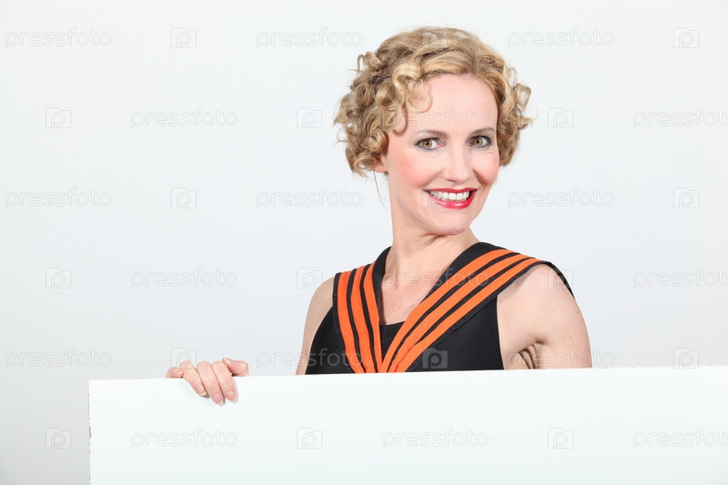 Блондинка с пустым баннером