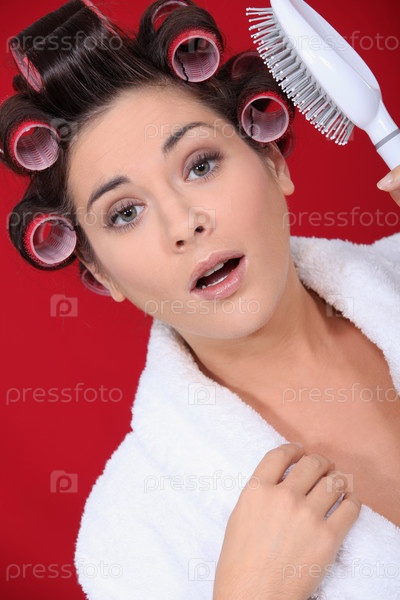 Женщина с бигуди