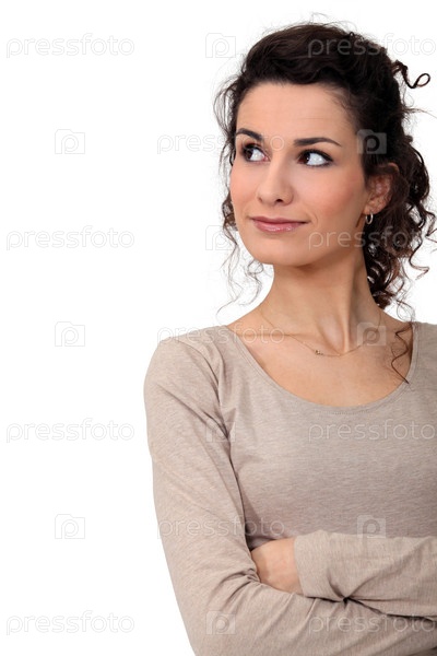 Женщина стоит, сложив руки на груди