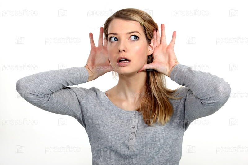 Блондинка пытается что-то услышать
