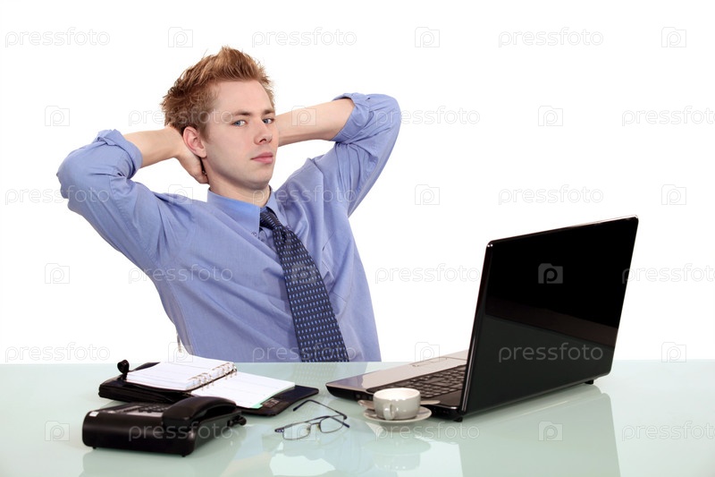 Молодой банкир перед компьютером