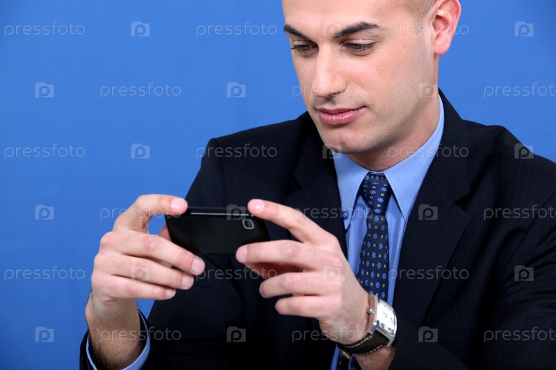 Бизнесмен отправляет текстовое сообщение
