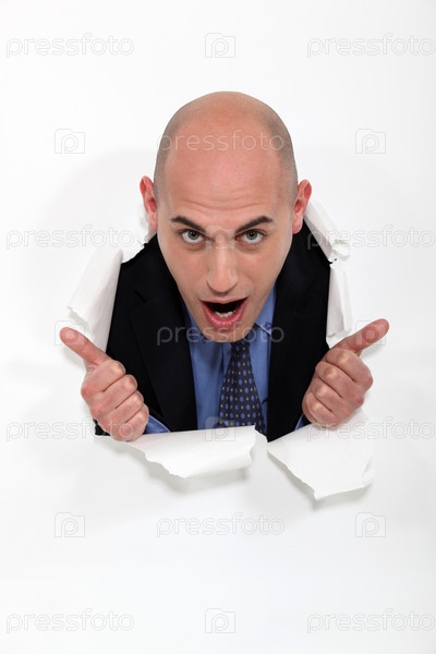 Мужчина прорывается через плакат